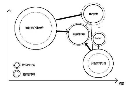 基于UV墨水的平板打印機(jī)市場,噴繪沒有涂層的材料,多種應(yīng)用,以替代傳統(tǒng)絲網(wǎng)印刷為主。